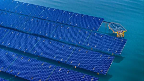 2025年11月16日,在山东省青岛市即墨区鳌山湾海域拍摄的海上光伏项目区。ICphoto